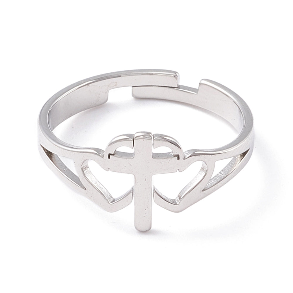 Cutout Cross and Hearts Adjustable Ring